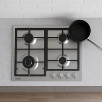 Placa de gas de 60 cm con 4 quemadores. Encendido electrónico. 1 quemador auxiliar de 1 kW 2 quemadores semirrápidos de 1,75 kW 1 quemador triple de 3,5 kW. Preinstalada con GLP e inyector de GN opcional incluido. Medidas Exterior: Ancho: 60 cm x Profundidad: 51 cm Dimensiones para instalación: Ancho: 56 cm x Profundidad: 48 cm